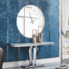 Consola recibidor de diseño italiano acabado, acero cromado y cristal blanco templado de 12mm.